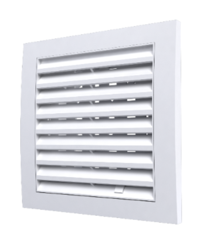 Решетка вентиляционная с наклонными фиксированными жалюзи, или динамичными жалюзи для модификации «РРП», предназначена для естественной вентиляции.